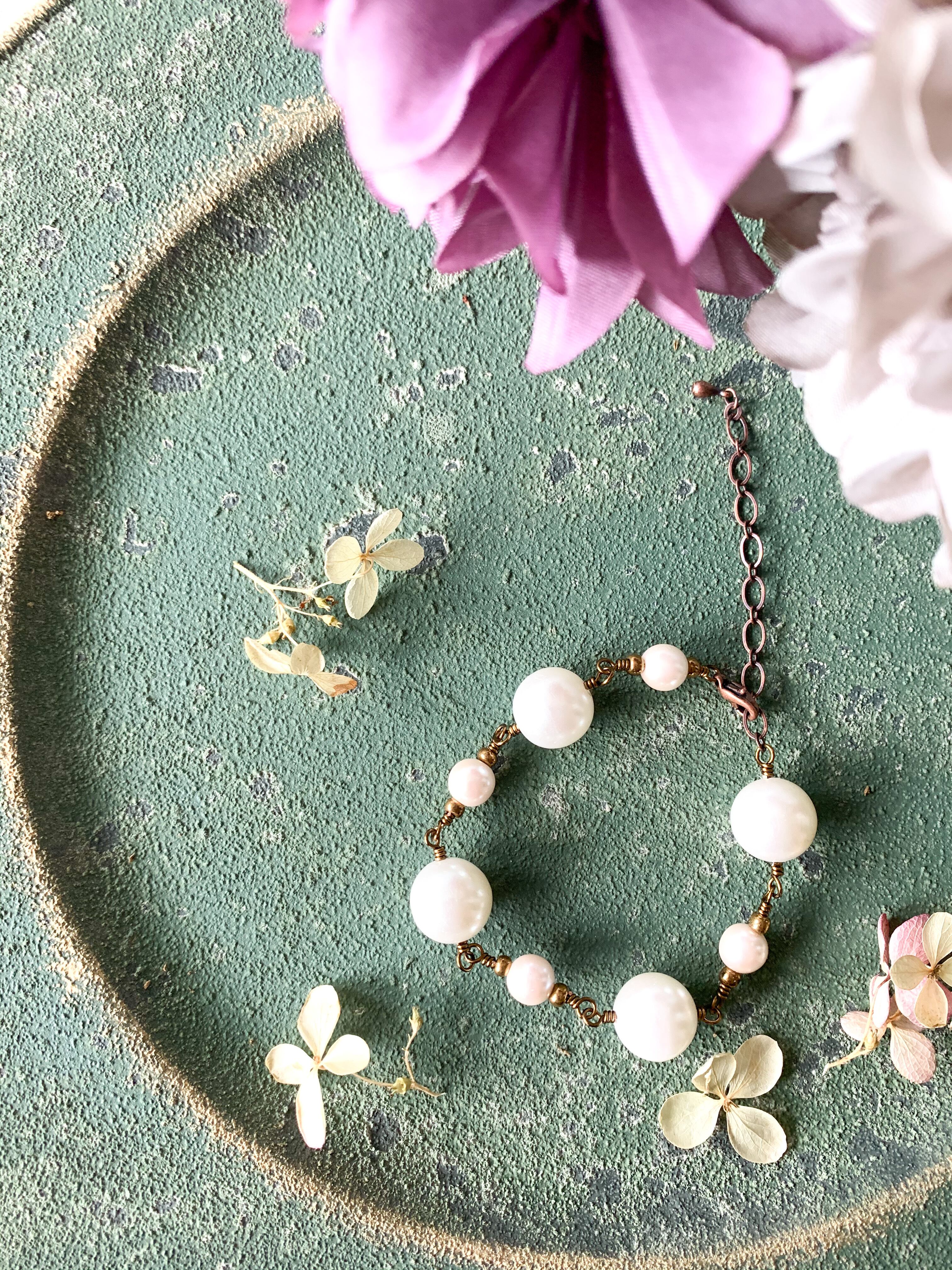 ※ それぞれのビーズを一つ一つ丁寧にメガネ留めで繋げてあります